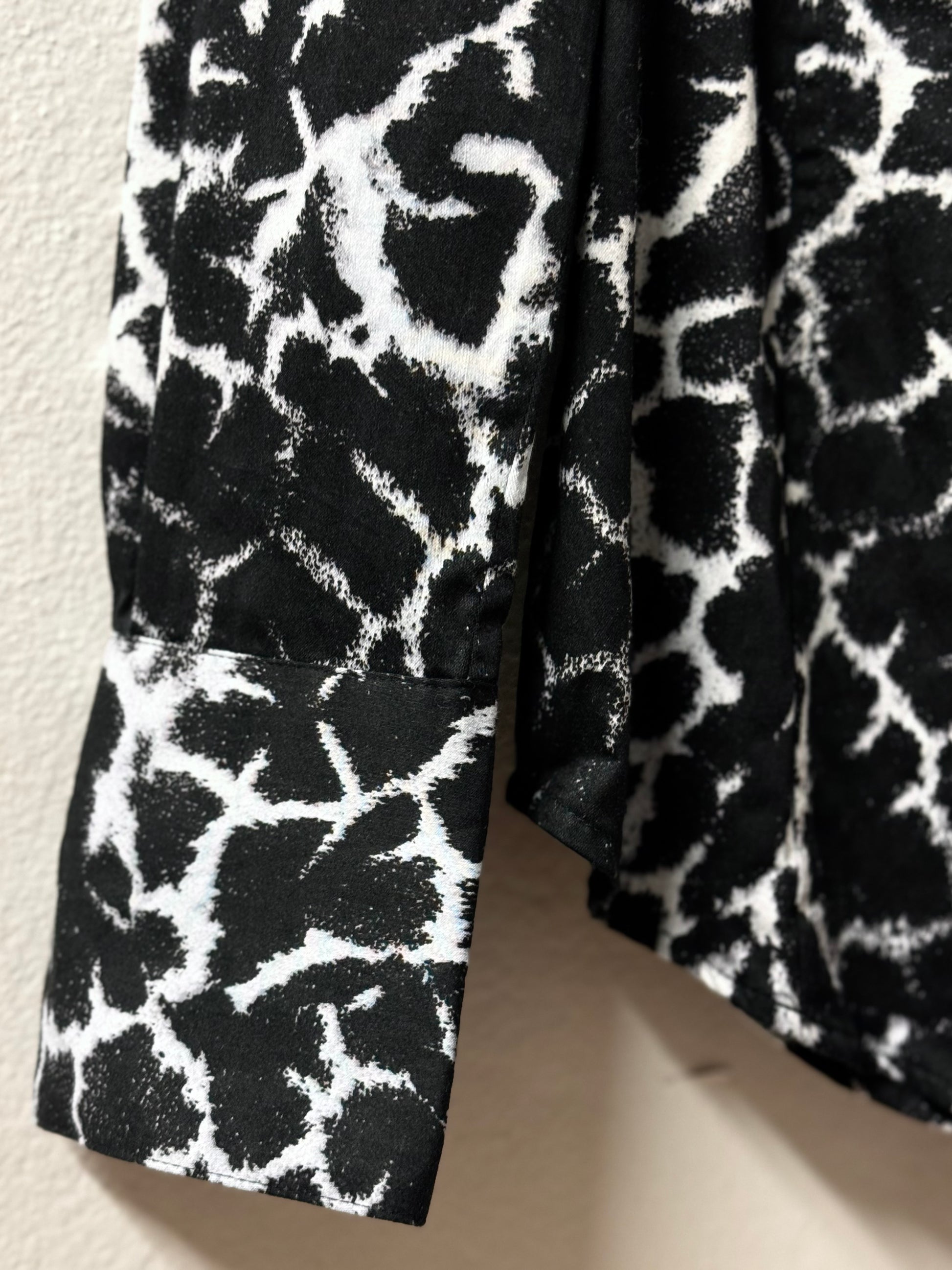 Calvin Klein womens black & white button up top. 98% cotton, 2% spandex.