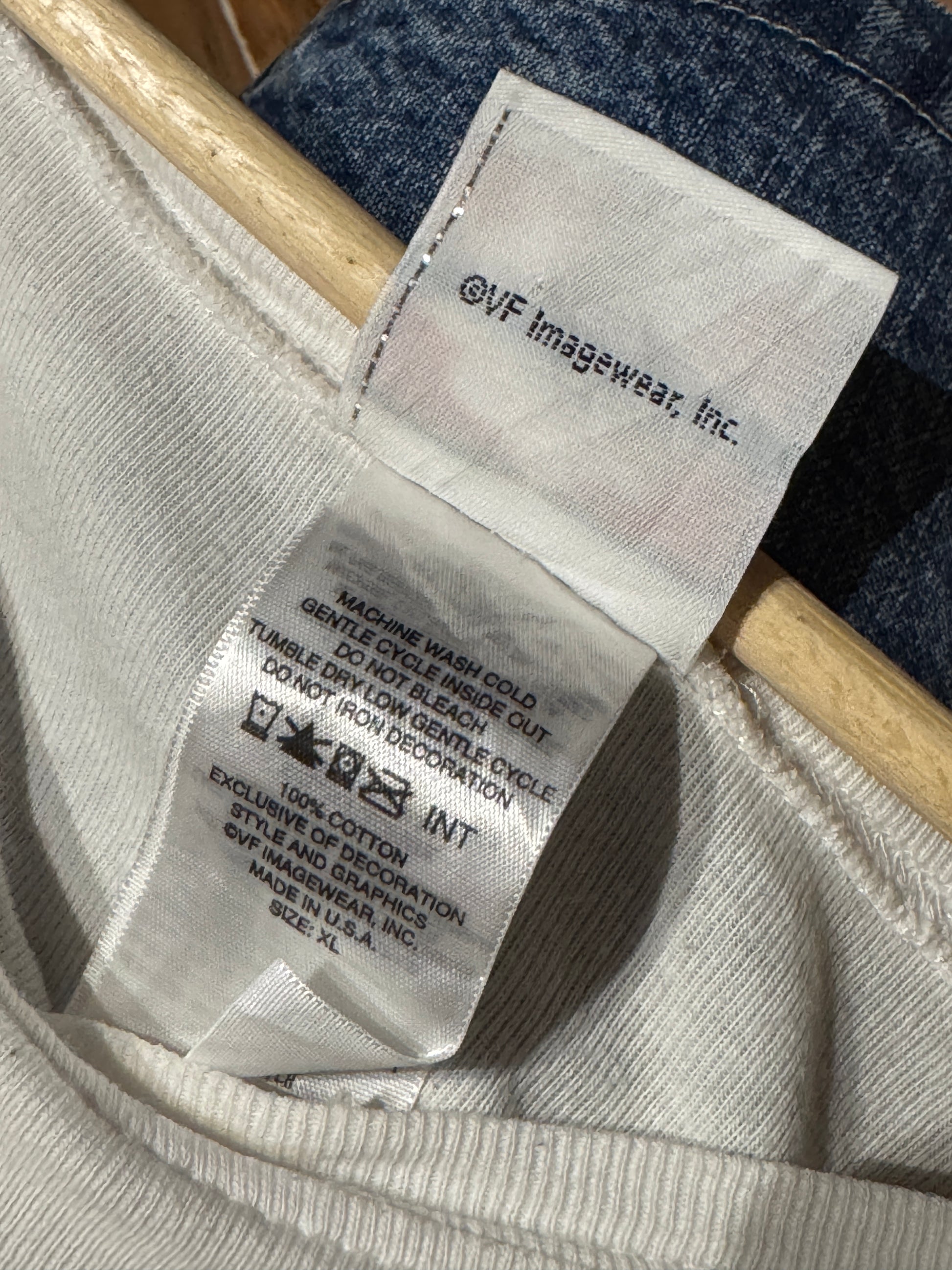 Vintage Harley-Davidson women’s tee celebrating 105 years of Harley heritage. Features a rhinestone embellished motorcycle graphic to the front and a House of Harley-Davidson Milwaukee, USA print to the back. Soft lightweight cotton with a relaxed drape and classic early 2000s Harley women’s cut.