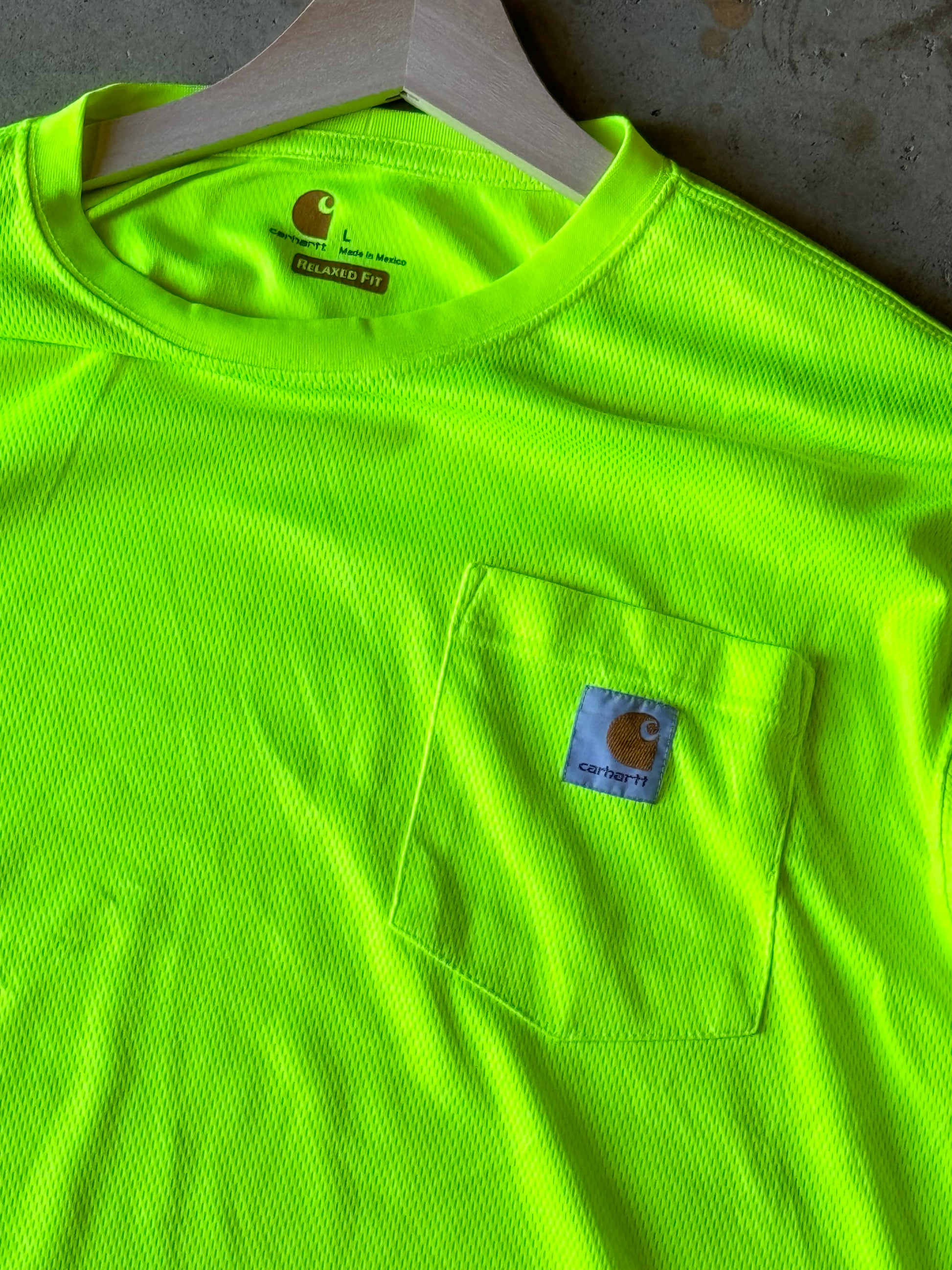 Vintage hi-vis yellow Carhartt force tee. Logo to chest pocket.