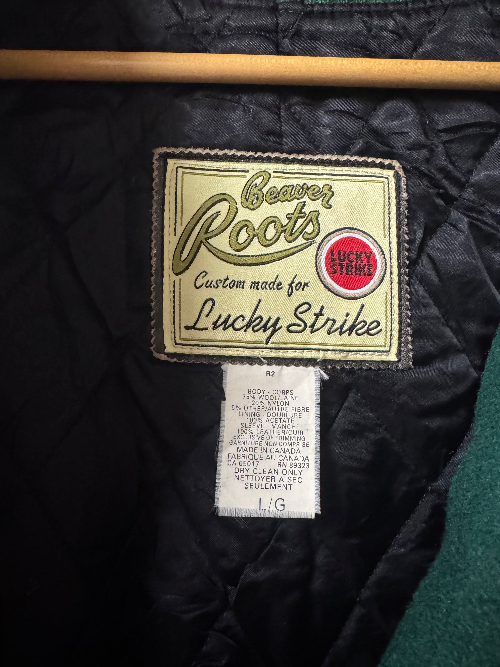 Vintage Lucky Strike x Roots Wool & Leather Varisty Jacket - Made in Canada [L]