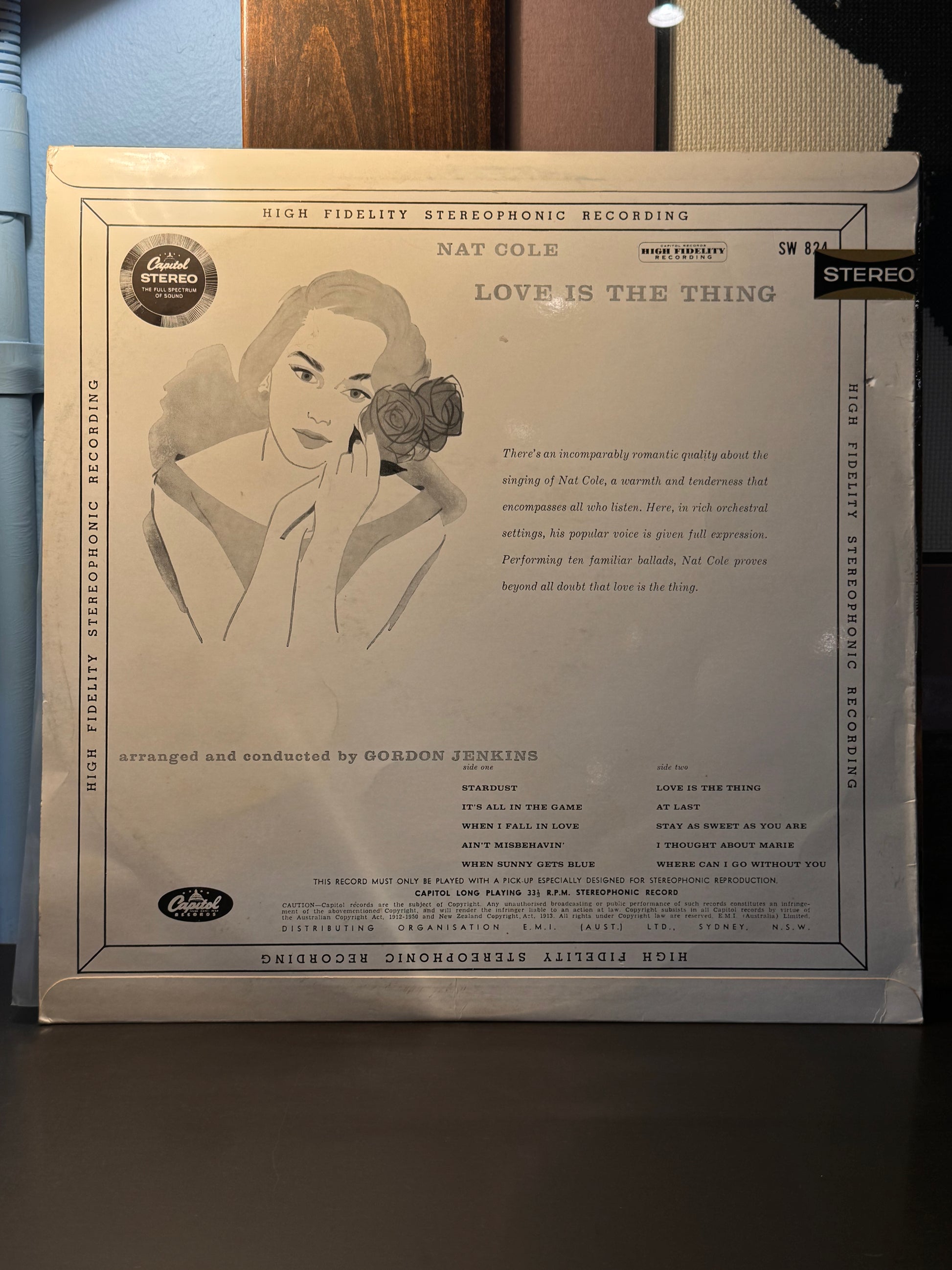 Nat King Cole with the orchestra of Gordon Jenkins 'Love is the Thing' vintage vinyl. Tested and cleaned - plays beautifully! Collectors item.