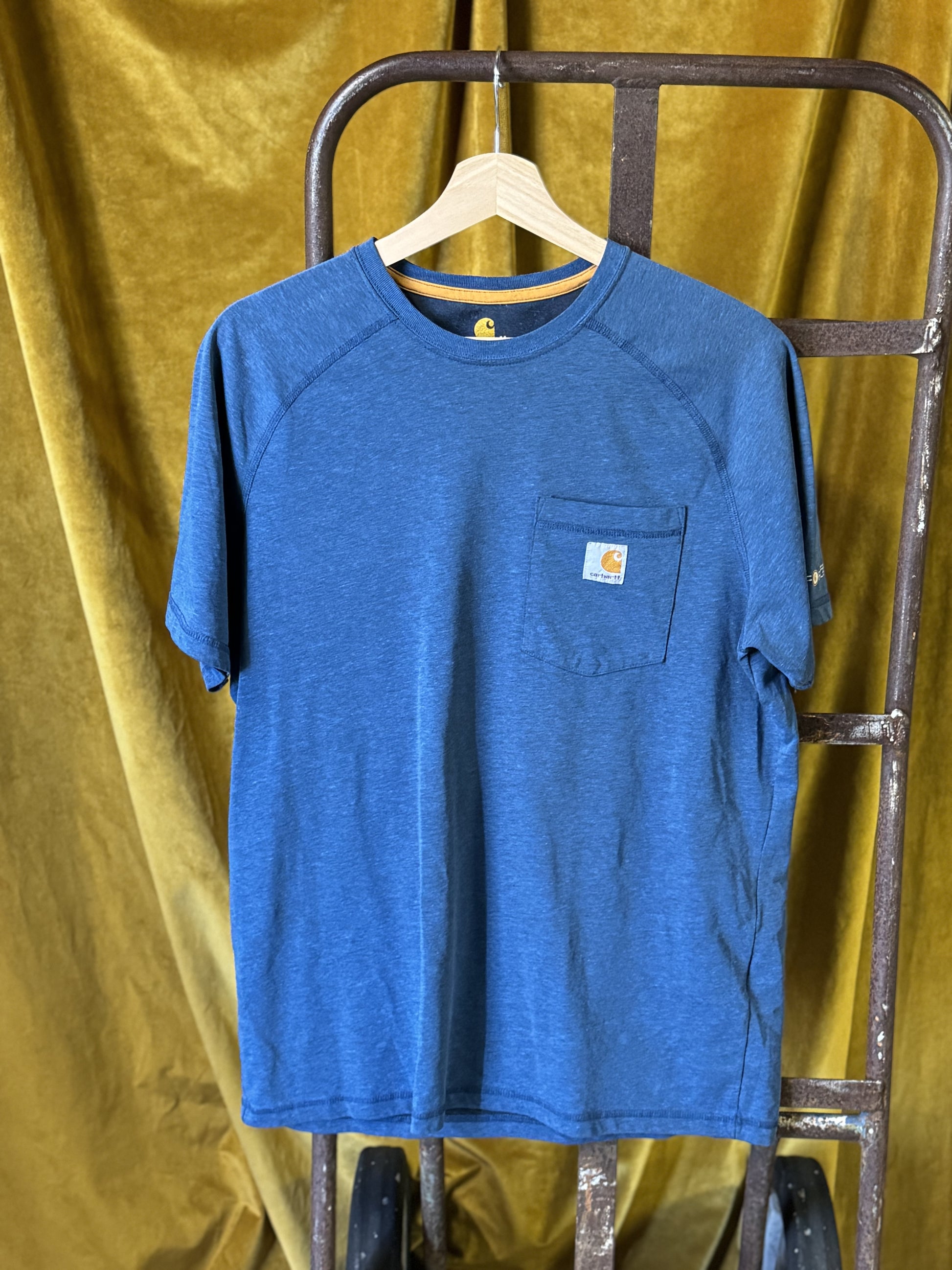 Vintage navy blue Carhartt force tee. Logo to chest pocket.