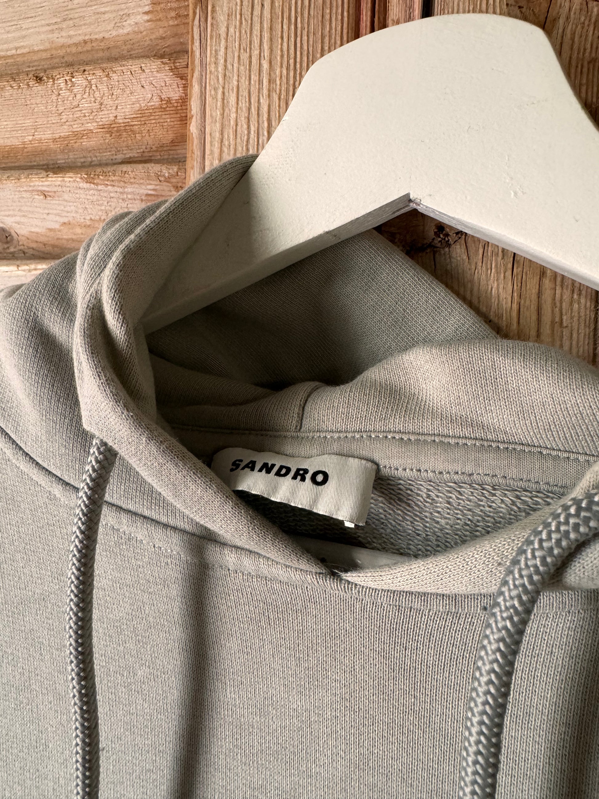 Preloved Sandro Paris pale green hoodie with embroidered logo to front.