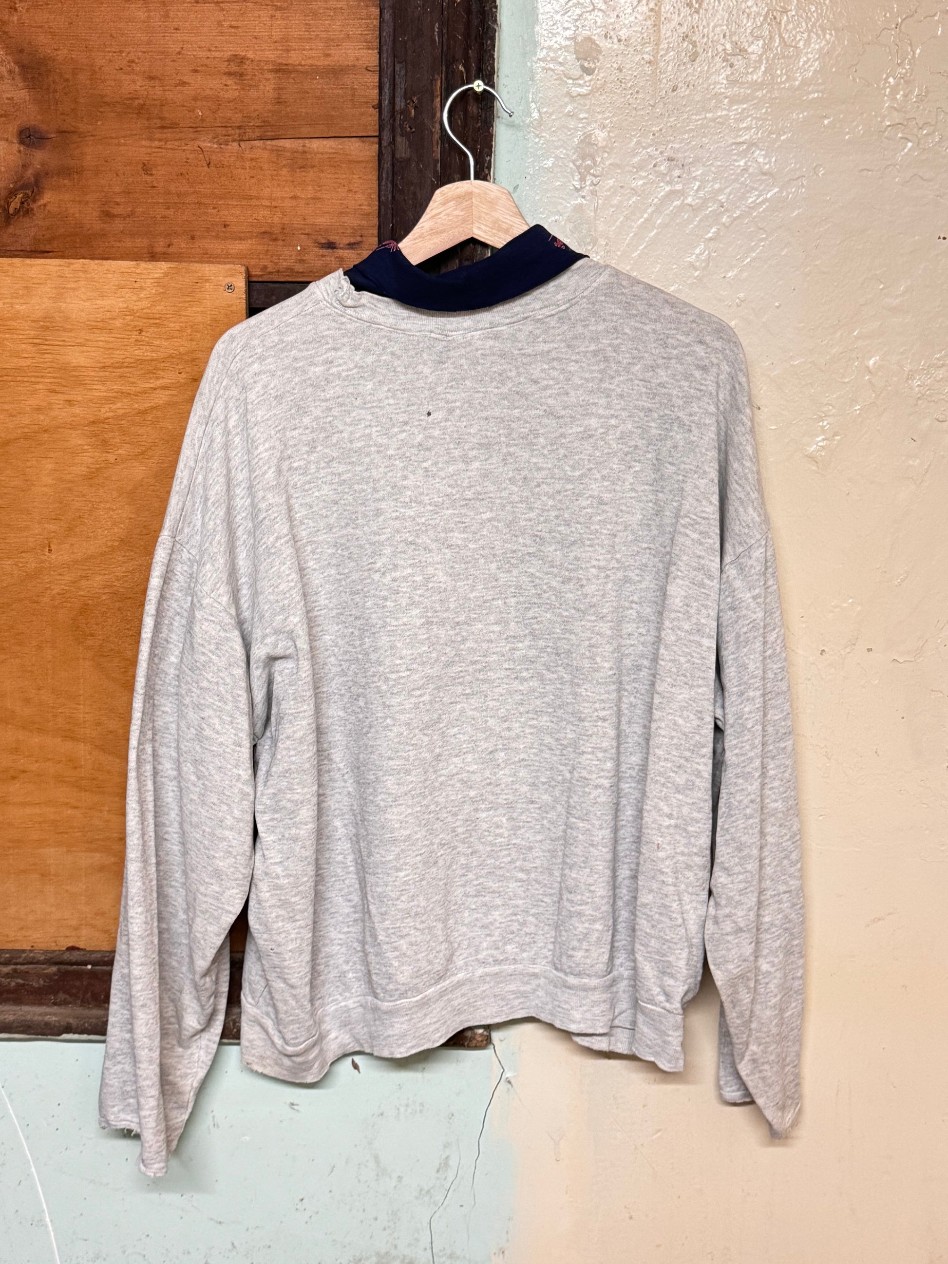 Vintage grey Bar Harbour Maine sweater with navy turtleneck.