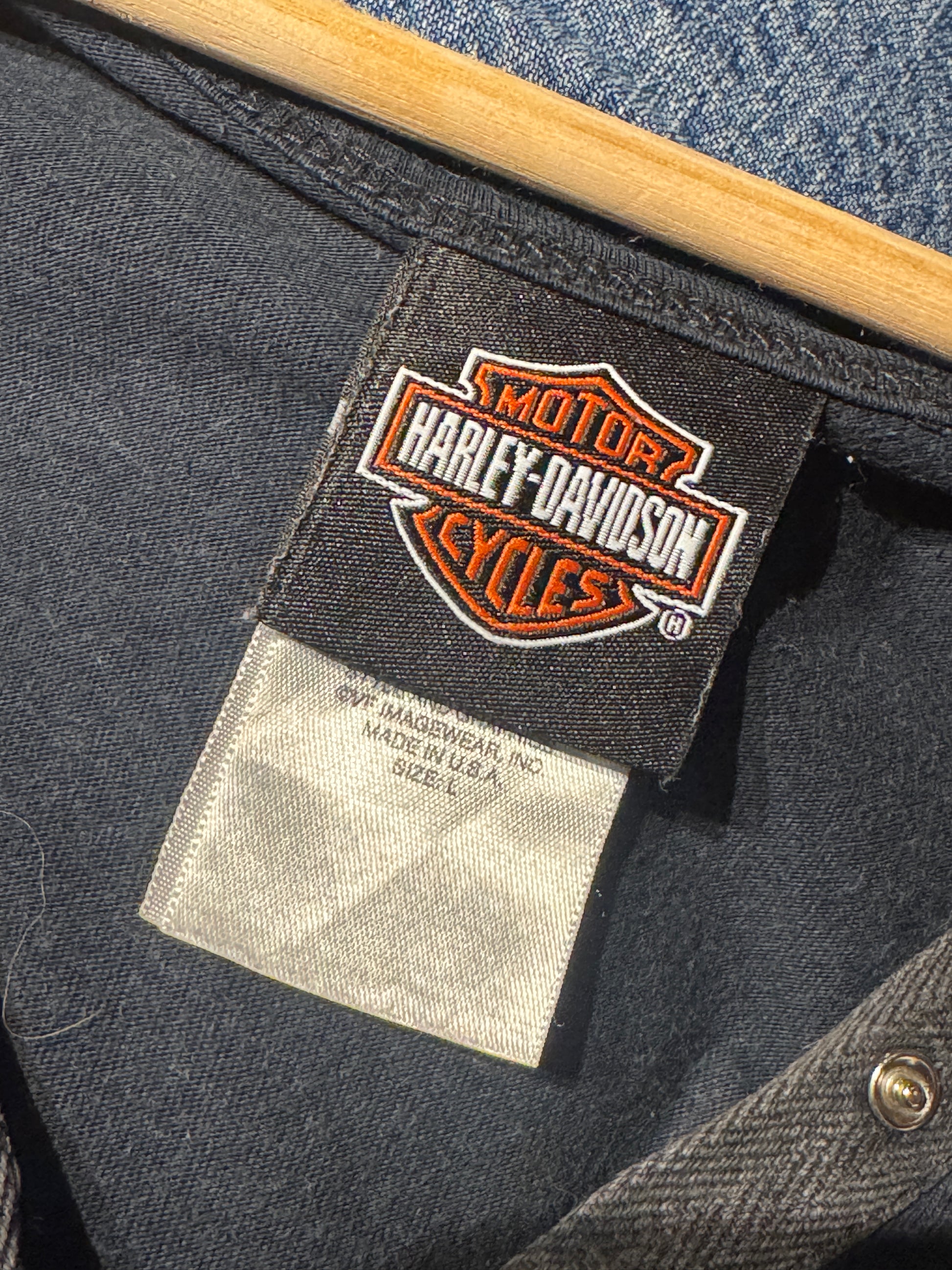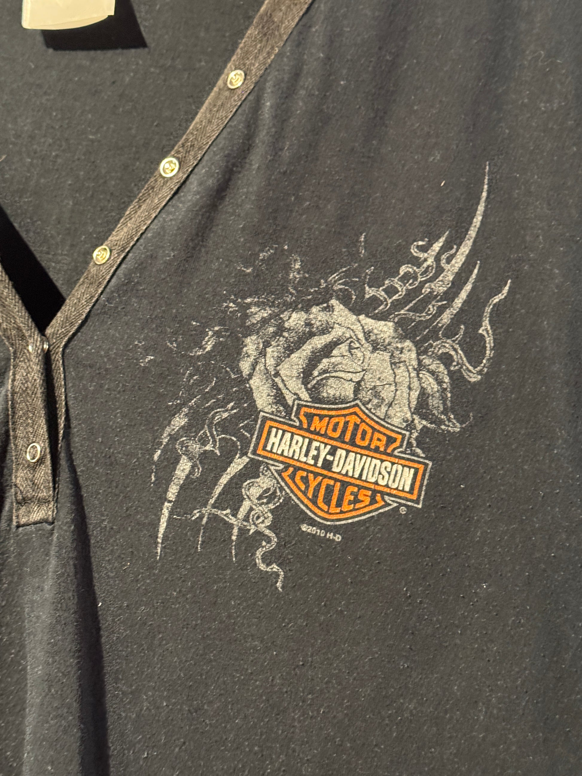 Vintage Harley Davidson Womens Snap Neck Henley T Shirt [L]