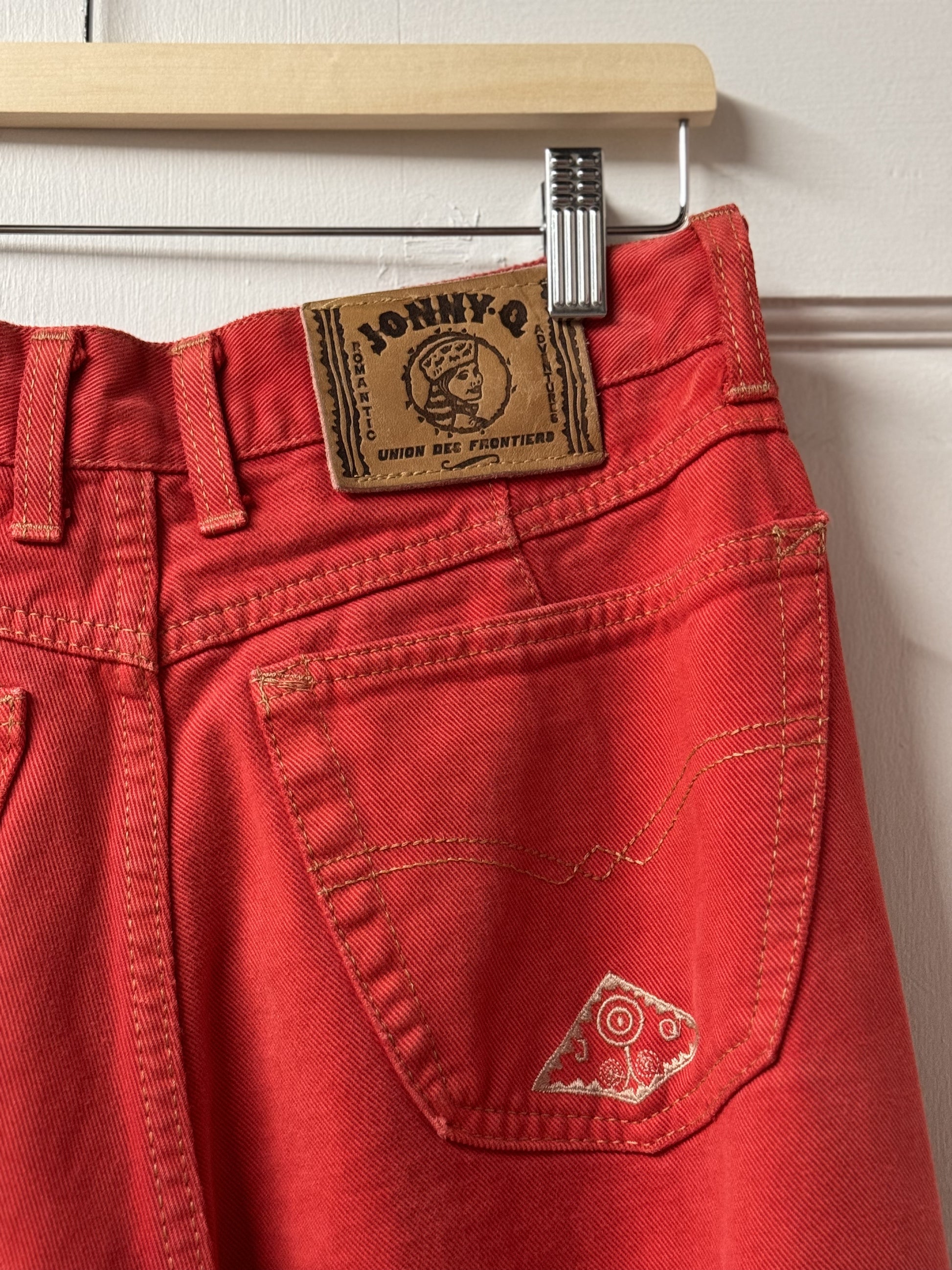 Italian made bold red Jonny Q jeans. Wide leg. 100% cotton. Made in Italy.