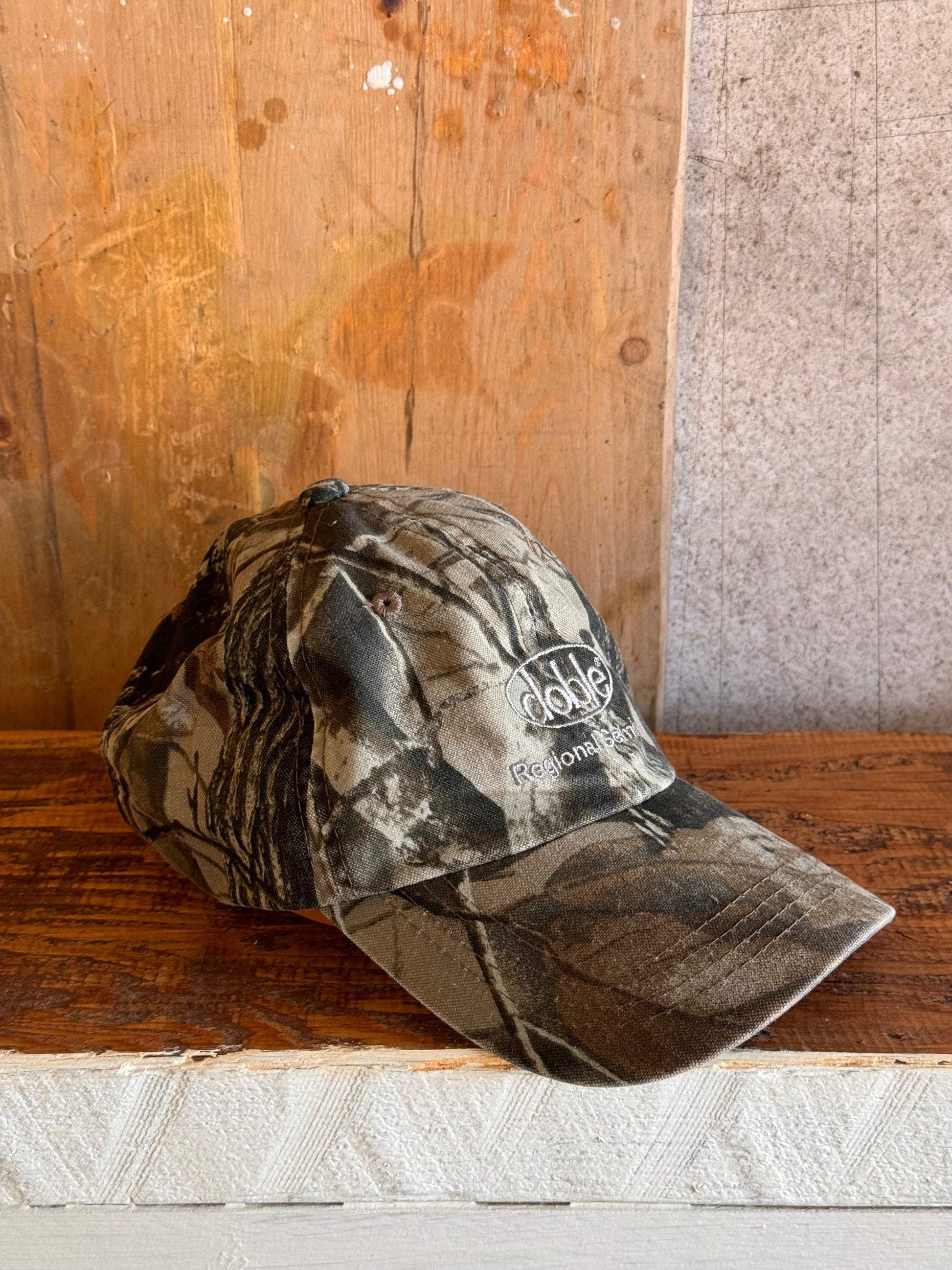 Vintage Realtree camo hat with embroidered 'Doble Regional Seminar' logo. Velcro closure.