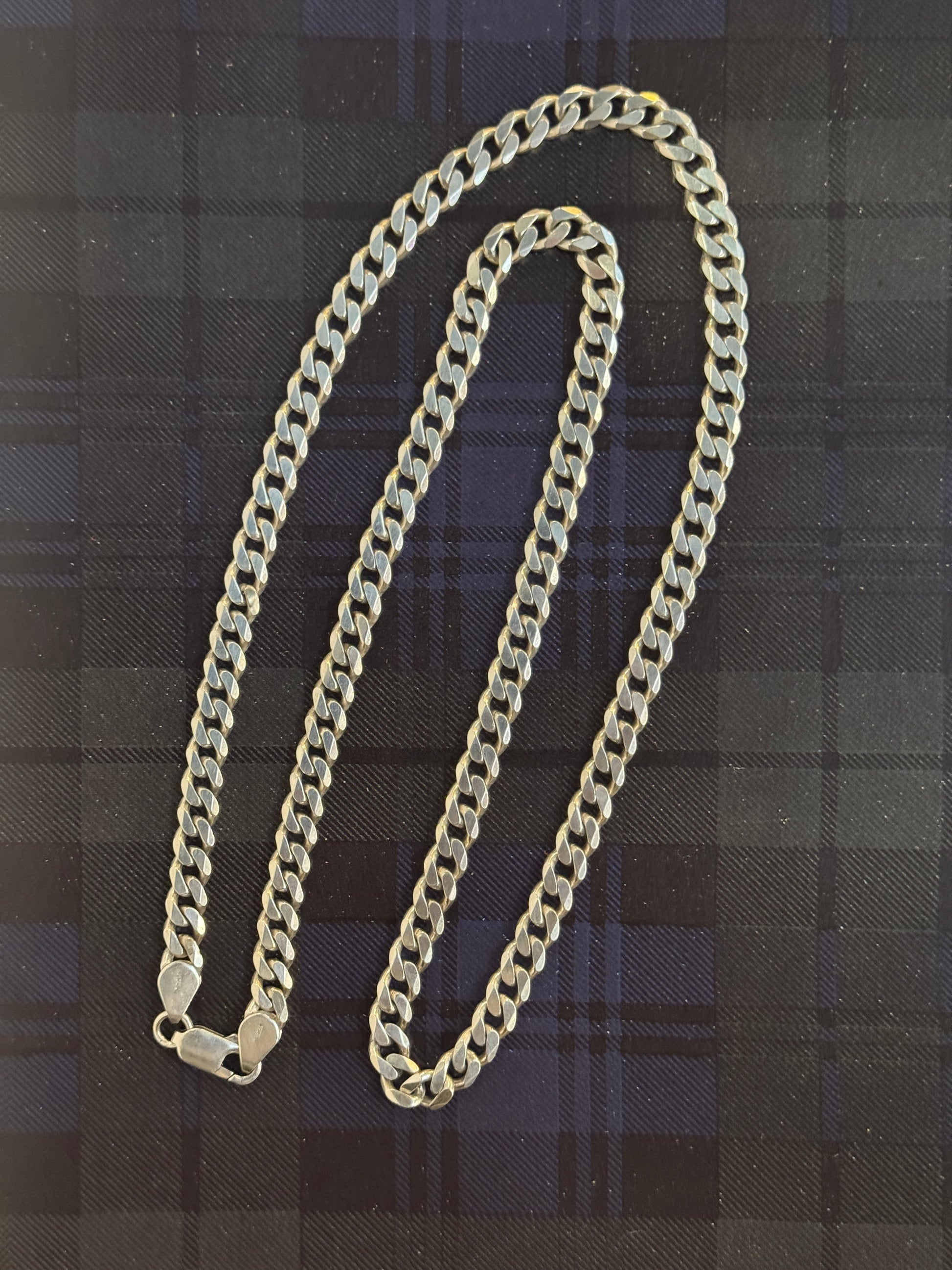 A solid silver vintage flat curb chain.