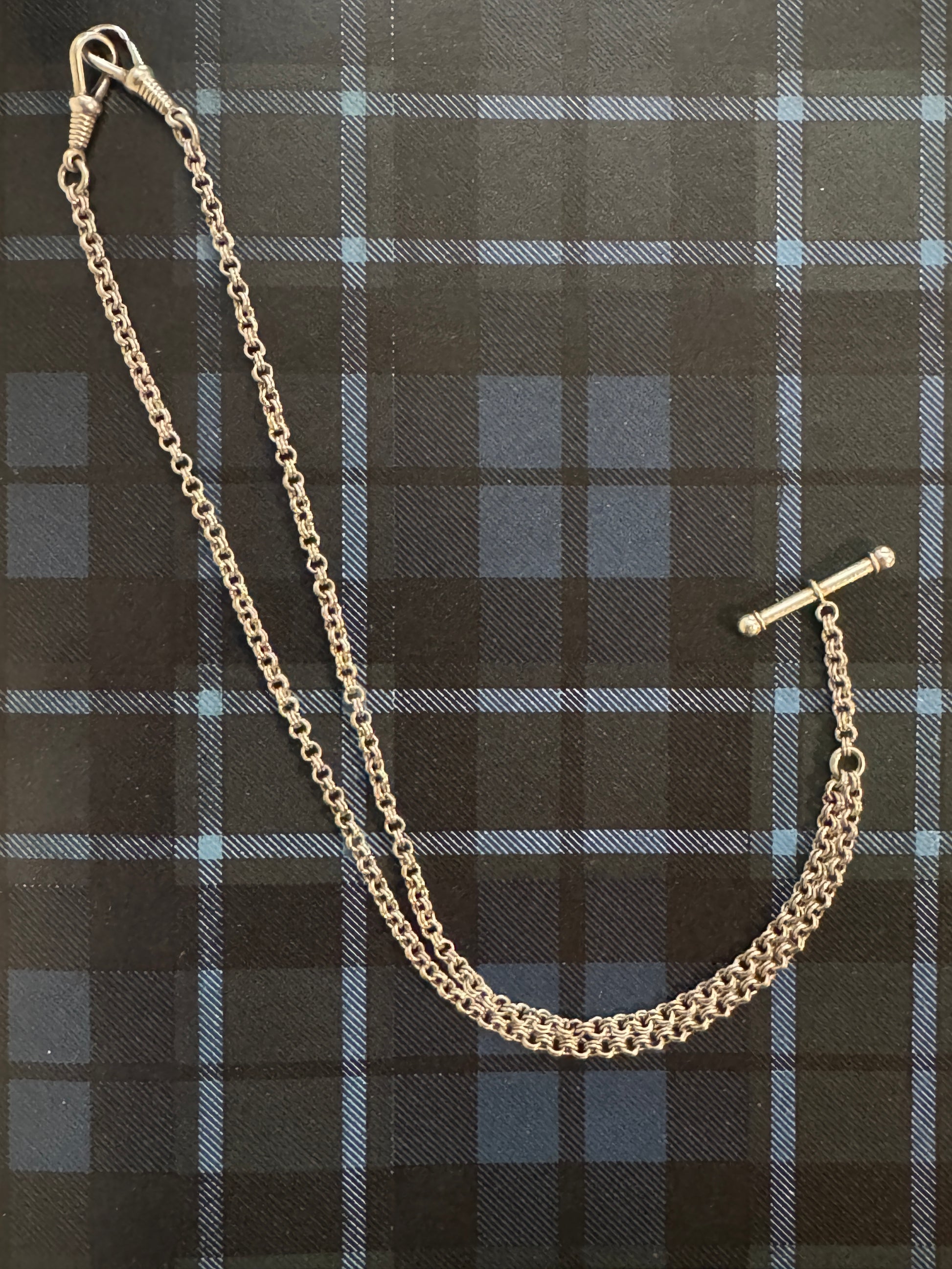 Vintage Sterling Silver Double Albert Watch Chain – T-Bar & Dog Clip