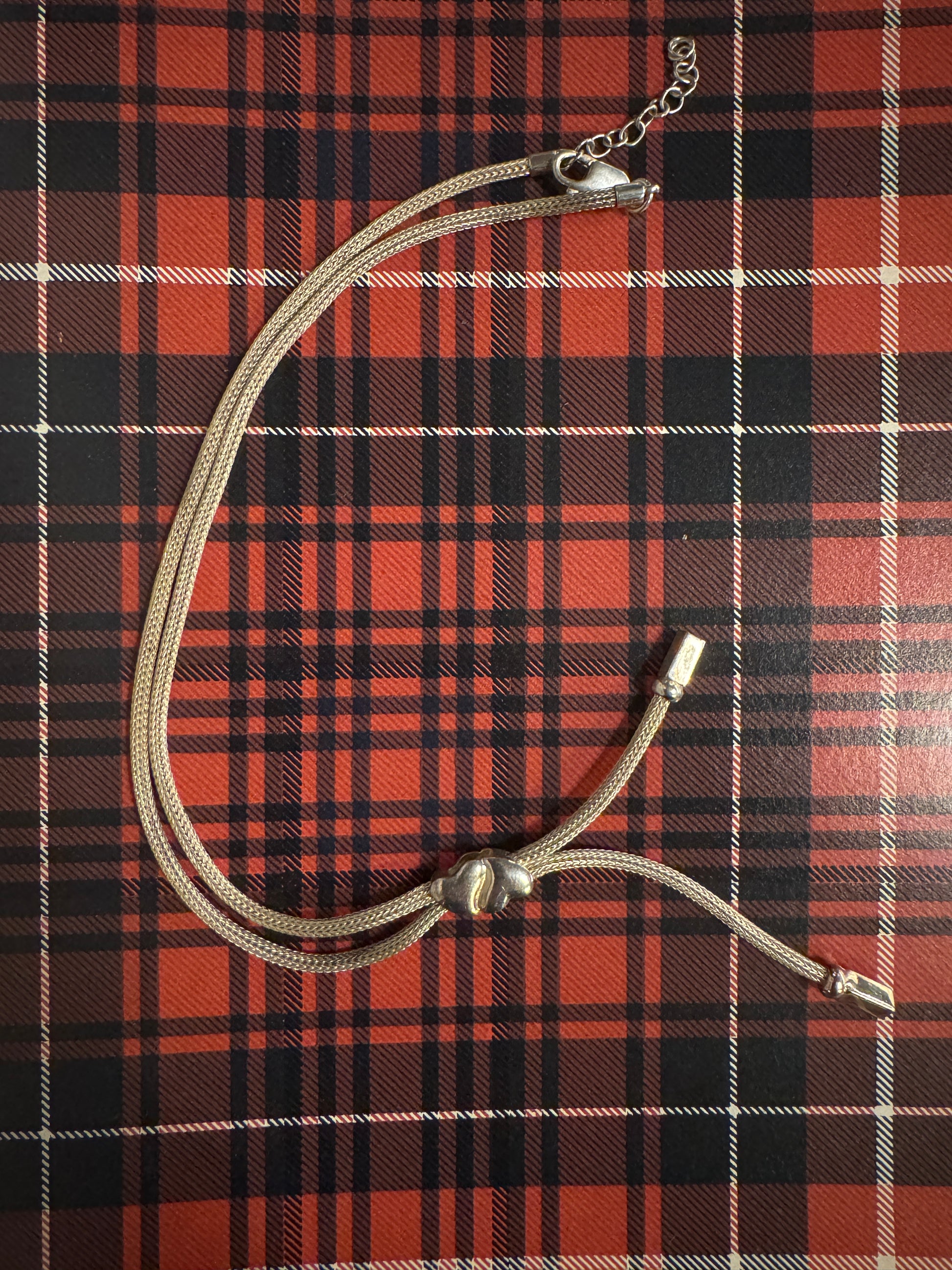 Vintage 925 sterling silver necklace featuring twin mesh chains joined at the front by a sculpted heart.