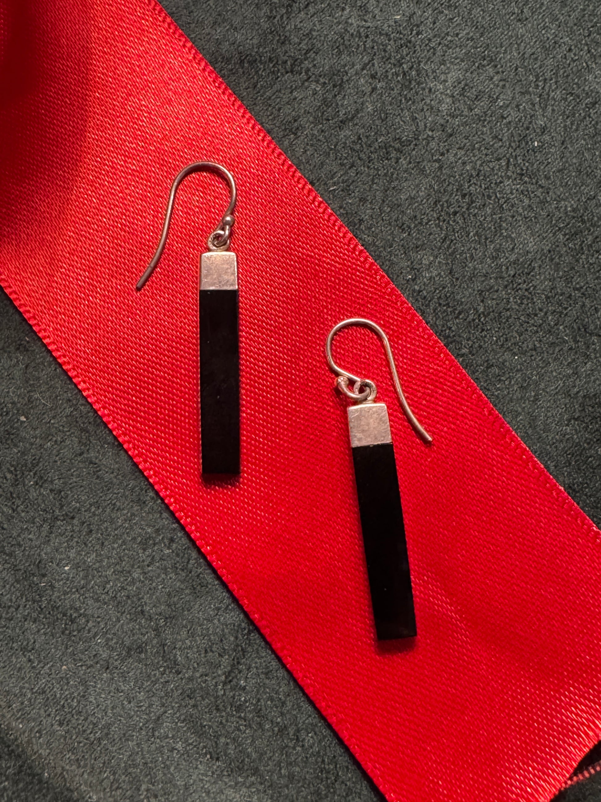 Vintage 925 sterling silver earrings featuring rectangular black onyx fronts.