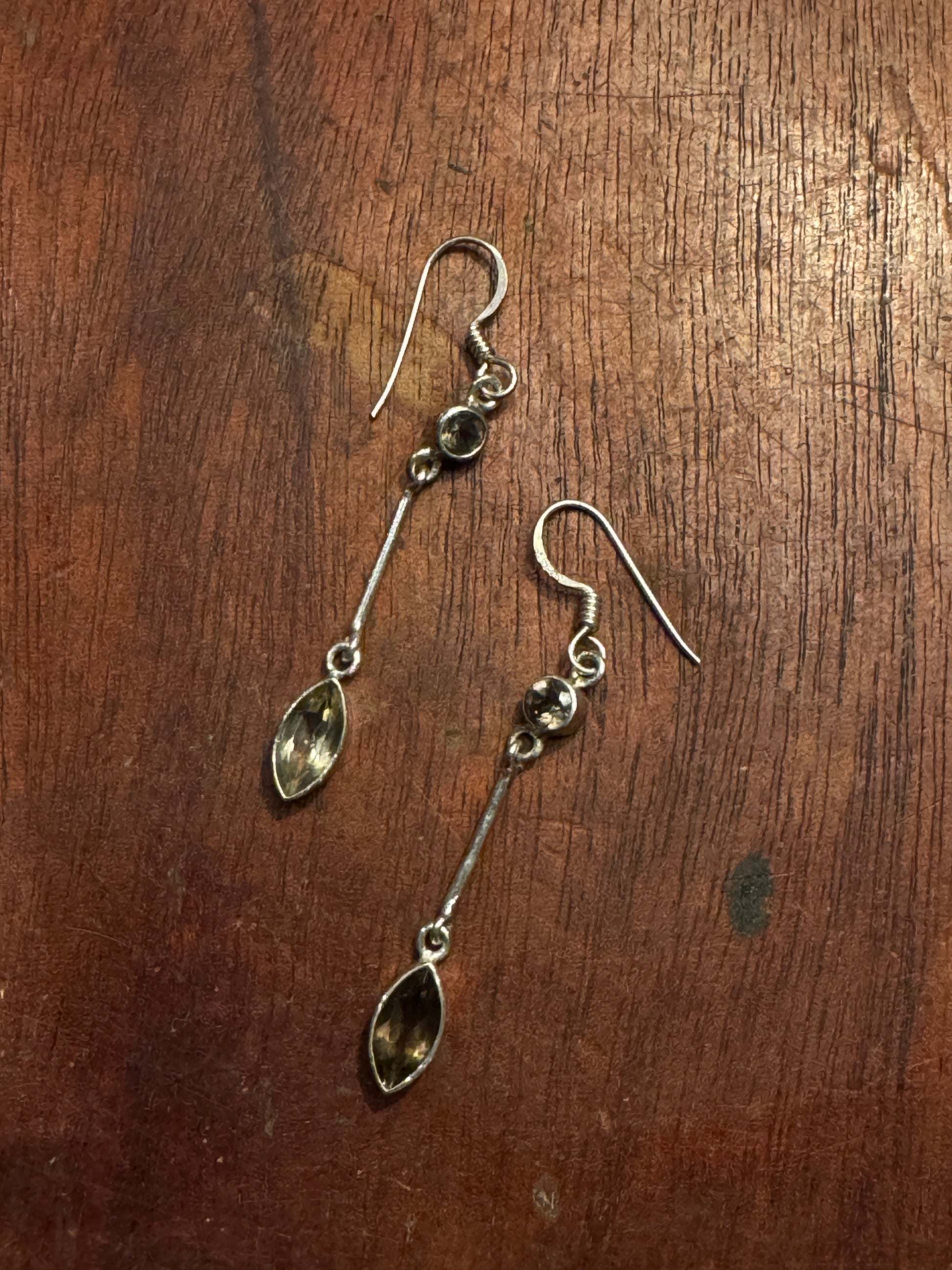 Vintage Sterling Silver & Smoky Quartz Drop Earrings – 925